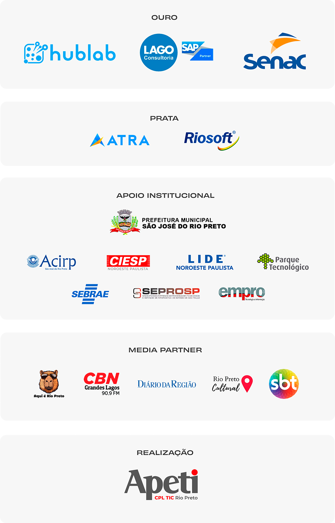 Não há meia entrada no Rio Preto Tech Summit 2026. Estamos oferecendo descontos especiais para estudantes, nossos parceiros e associados da Apeti. Acreditamos que essa é uma forma de valorizar o apoio e engajar aqueles que valorizam o desenvolvimento da tecnologia e inovação em nossa região. Aproveite essa oportunidade para adquirir seu ingresso com desconto e fazer parte dessa experiência incrível de conhecimento e conexões no Rio Preto Tech Summit 2026!